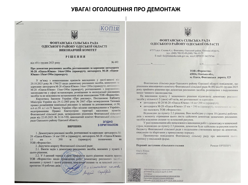 УВАГА! ОГОЛОШЕННЯ ПРО ДЕМОНТАЖ