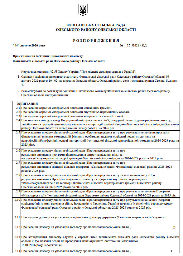 Про скликання засідання Виконавчого комітету